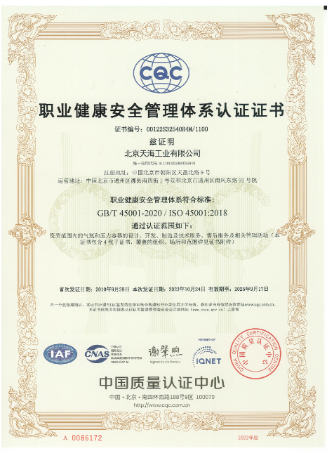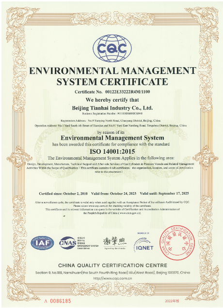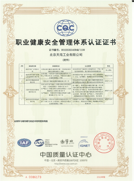 2010年-2015年,天海工業(yè)陸續(xù)建立了ISO14001和OHSAS18001環(huán)境和職業(yè)健康安全管理體系,整合了天海工業(yè)“三體系”,通過中國質(zhì)量認(rèn)證中心的認(rèn)證并取得證書。